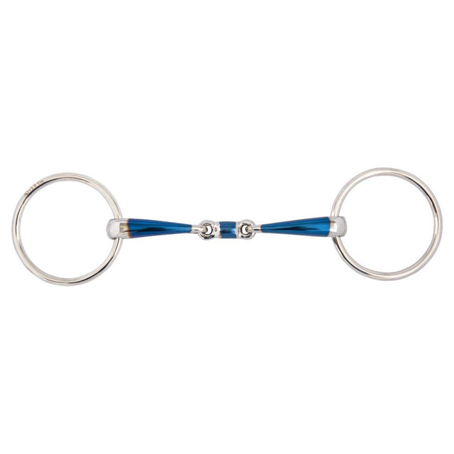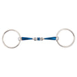 - This double jointed loose ring snaffle is made of solid stainless steel rings and a mouthpiece of mild steel combined with a layer of sweet iron on the mouthpiece (blue).