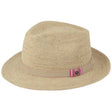 - Raffia hat decorated with leather braid with Fléchet pin.